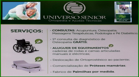 Universo Sénior é uma Loja Ortopédica - Ortopedia e Ajudas Técnicas. Centro de Ortoprotesia próprio em Corroios. A Ortopedia Universo Sénior é a sua Loja Ortopédica especializada na comercialização de produtos e serviços de Ortopedia e Geriatria. Aluguer de camas hospitalares articuladas e cadeiras de rodas.